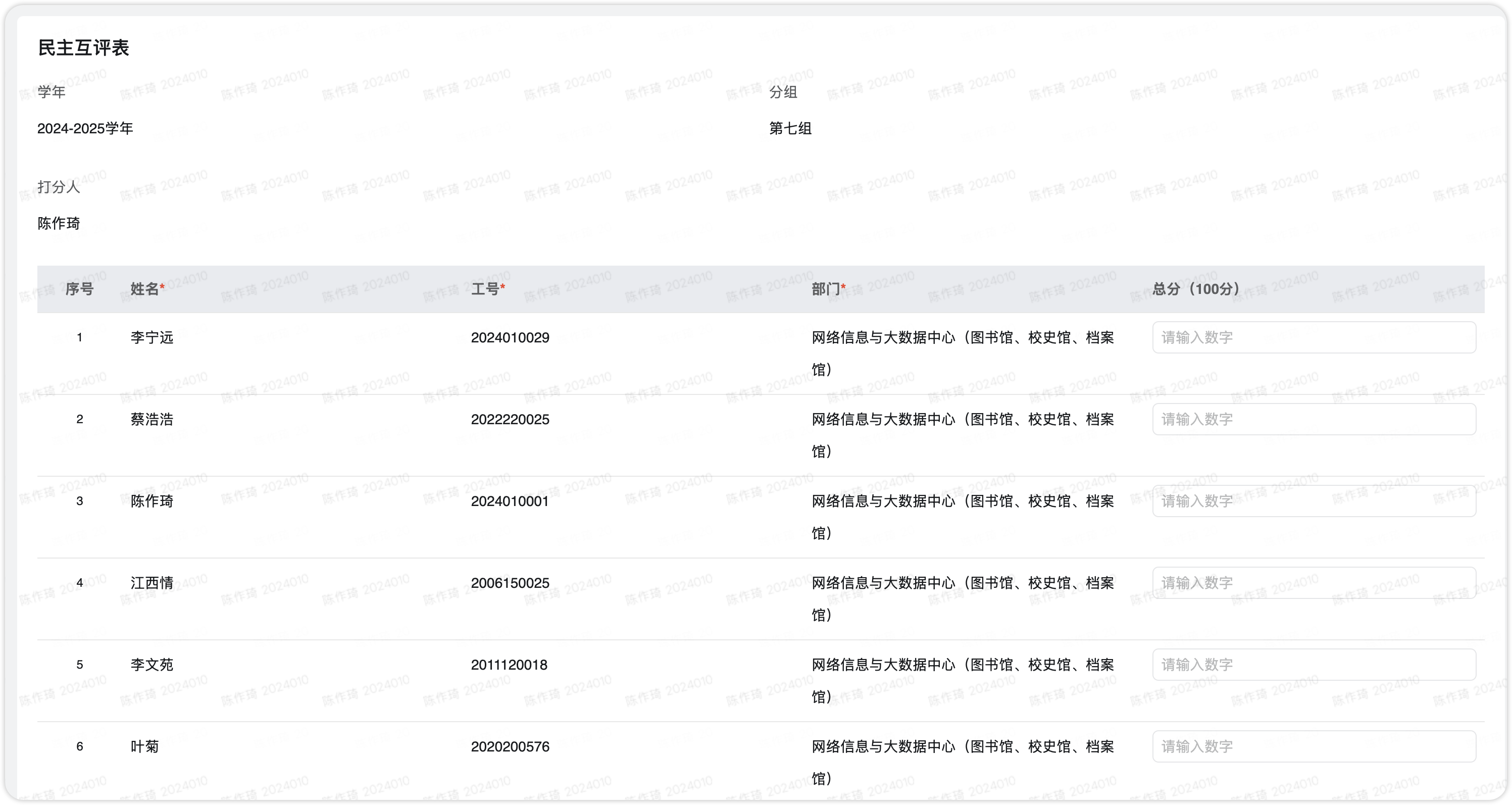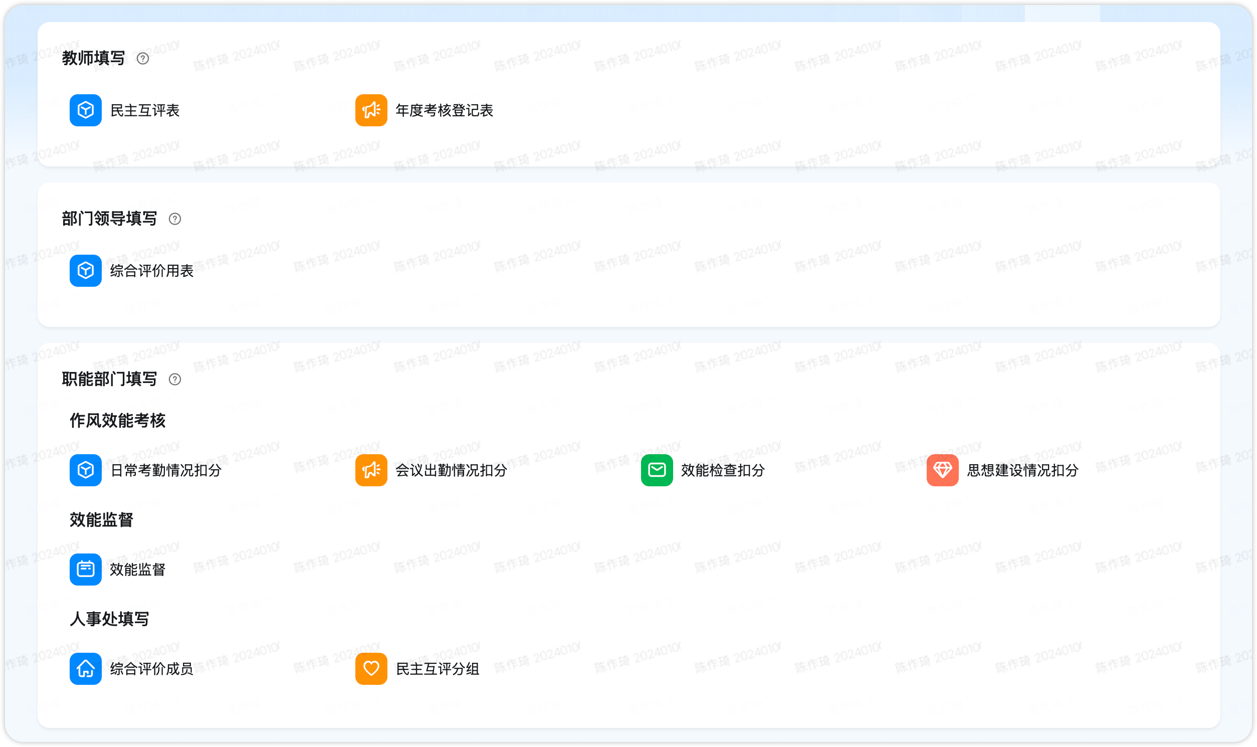 6月将上线智能行政考核系统。人事处提前完成分组设置、优秀人数。考核时,系统将自动在打分界面显示本组人员信息或本部门考核人员信息,考核者仅需直接评分。系统将整合作风效能考核及效能监督分数,推送至大数据中心进行综合计算,得出得分排名,并依据预设的优秀名额自动确定优秀教师人选。