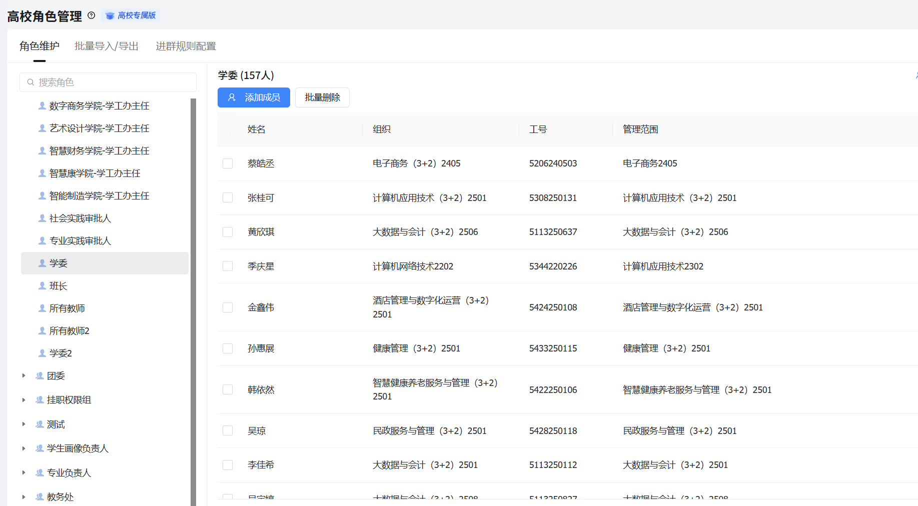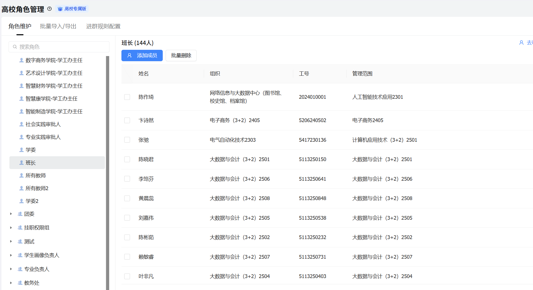 高校角色:完成宜搭平台组织架构角色精准同步,信息统一权威。