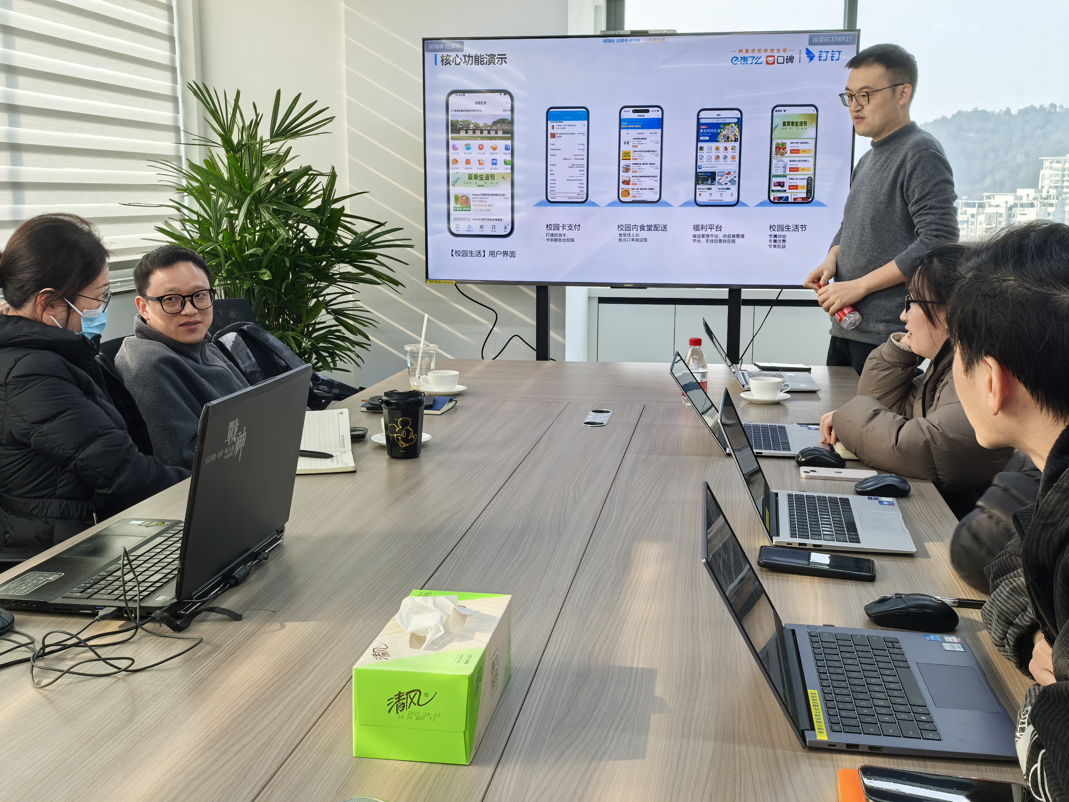 双方探讨定制化开发我校校园生活信息化平台建设的可能性和方案。第一,将校园生活数字化平台与数字商贸、校园配送和师生福利相结合。第二,围绕平台搭建、功能设计、福利活动等方面打造便捷、高效、实惠的服务体系。第三,商议在平台建设、运营和维护过程中的合作模式、责任分工和费用预算等。